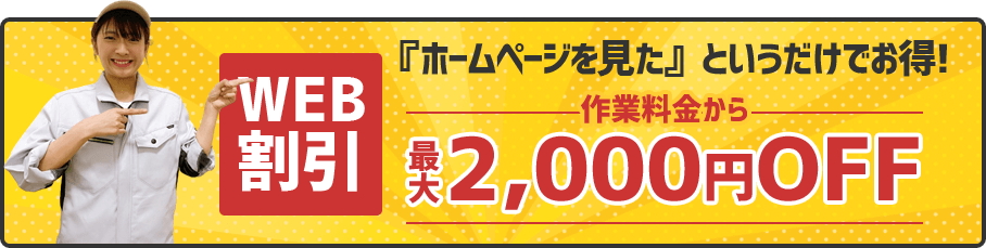 今なら「WEBを見た」とお伝えいただくだけで最大2,000円割引のキャンペーンを実施中です!